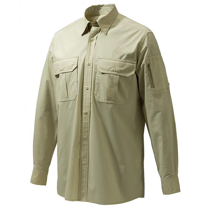Pánska košeľa Mortirolo s dlhým rukávom vyrobená z bavlny a polyesteru s antibakteriálnou úpravou a ochranou proti UV žiareniu. Ľahká a priedušná.Vlastnosti:Skrytý gombík na golierZapínanie na gombíky a suchý zips na hrudiVrecká s dvoma priehradkamiVrecko so zipsomUzáver a držiak na pero na rukáveVyhrnutý rukávVyšívané logo BerettaStrih: Regular fit